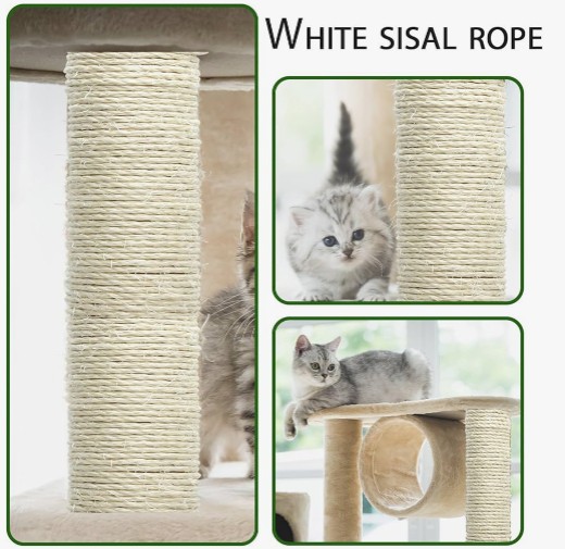 3. miljøbeskyttelse og bæredygtighed: Sisalpoler er afledt af agave -anlægget og er en vedvarende naturressource. Det er miljøvenligt at bruge sisalstænger som kattetræmaterialer og kan også fremme bæredygtig udvikling. Plantnings- og høstprocessen for sisalplanter er relativt enkel med lave krav til jord- og vandressourcer, hvilket hjælper med at beskytte det økologiske miljø.