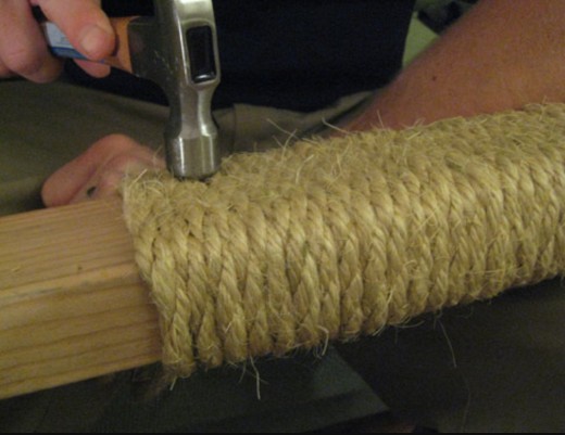 Hvordan er sisal rebet pakket rundt om søjlen?