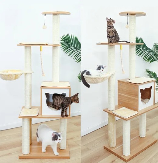 | Holdbarhed og stabilitet | Miljøvenlig træ har naturlig styrke og sejhed, kan modstå katte klatring og hoppe, har god korrosionsbestandighed og insektmodstand og udvider kattetræets levetid |