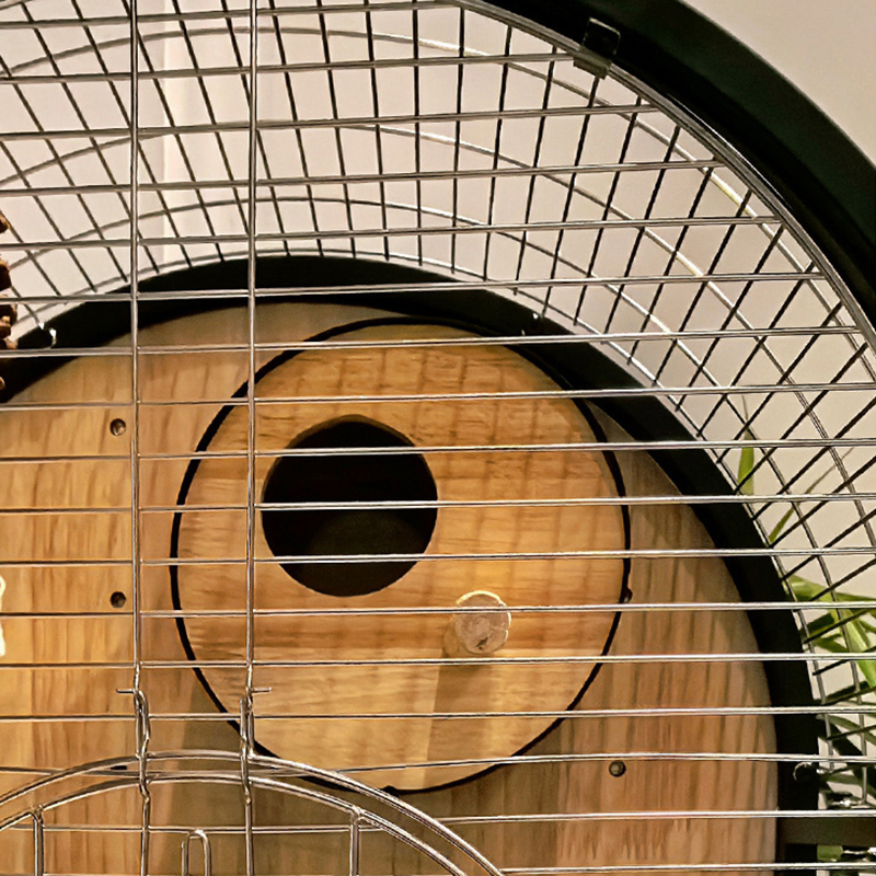 Denne træfuglbur kombinerer perfekt praktiske funktioner med økologisk æstetik, hvilket giver et sikkert og hygiejnisk boligareal til fugle.