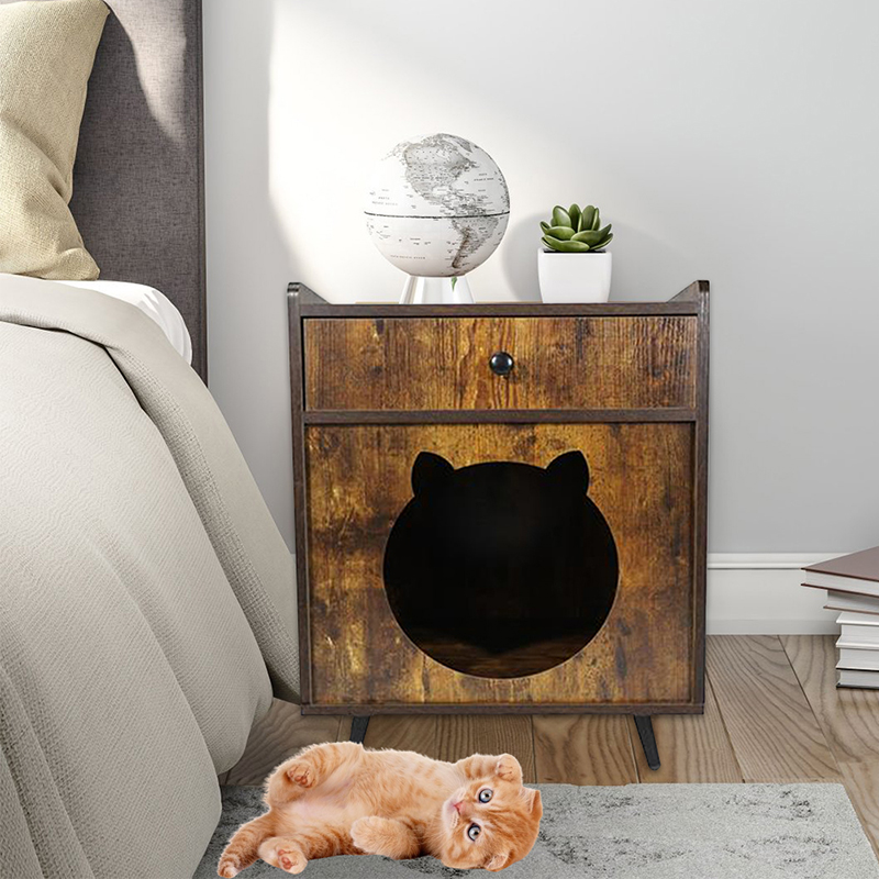 2. Kreativ møbeldesign: Unik retro-tv-form Praktisk skuffeopbevaring, ikke kun er kattens hyggelige kabine, men kan også bruges som et stue sidebord, flerbrukket tager ikke plads.