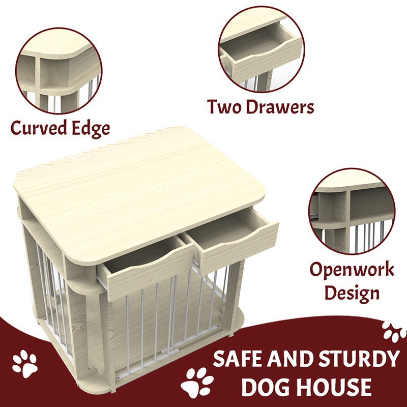 1. Sikkert og sundt materiale: Møblerstil Hundbur Valgt fast træramme og kombination af ståltrådhegn, med fødevarekvalitet ikke-giftig belægning, selvom kæledyret tygger er sikkert og bekymringsfrit.