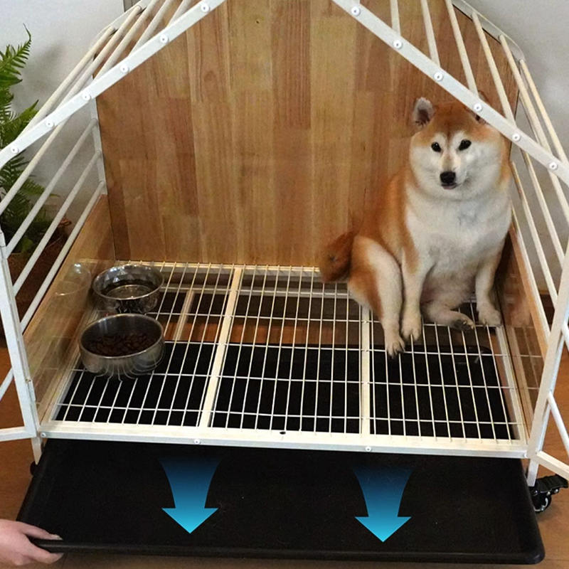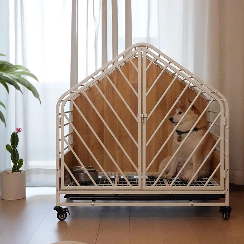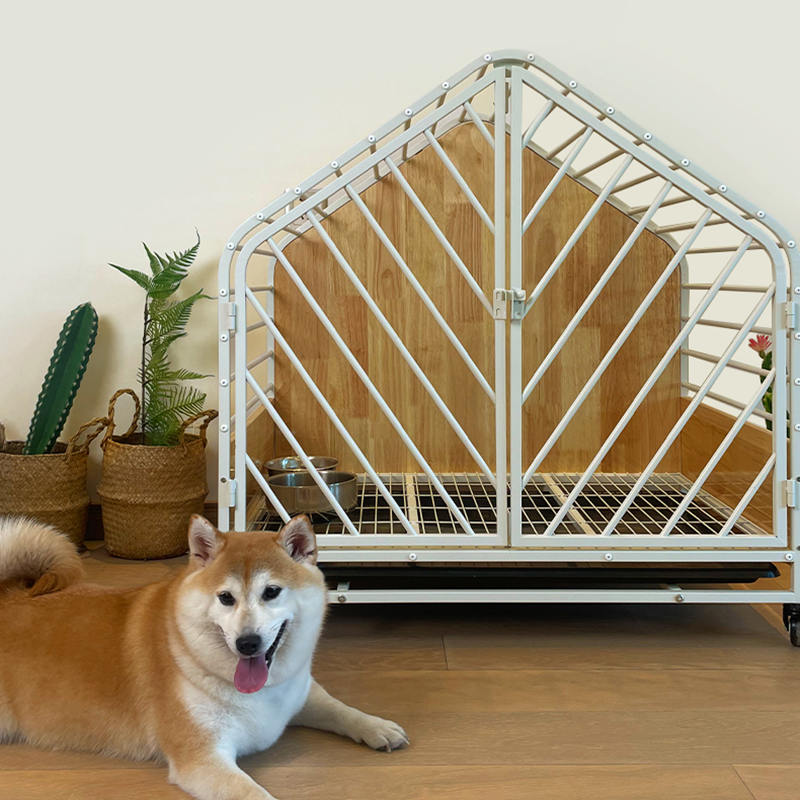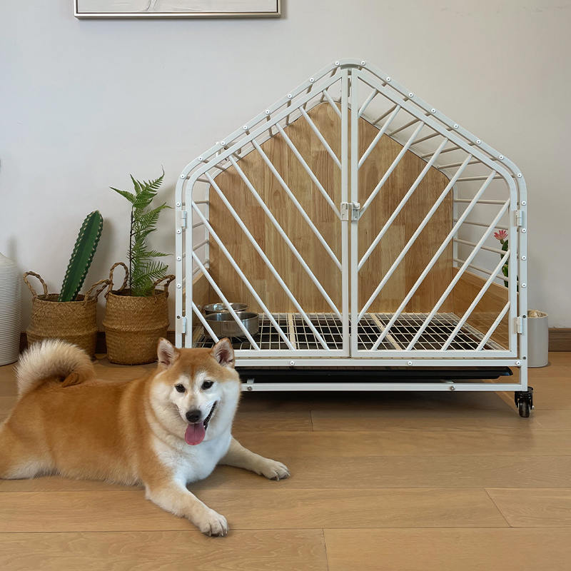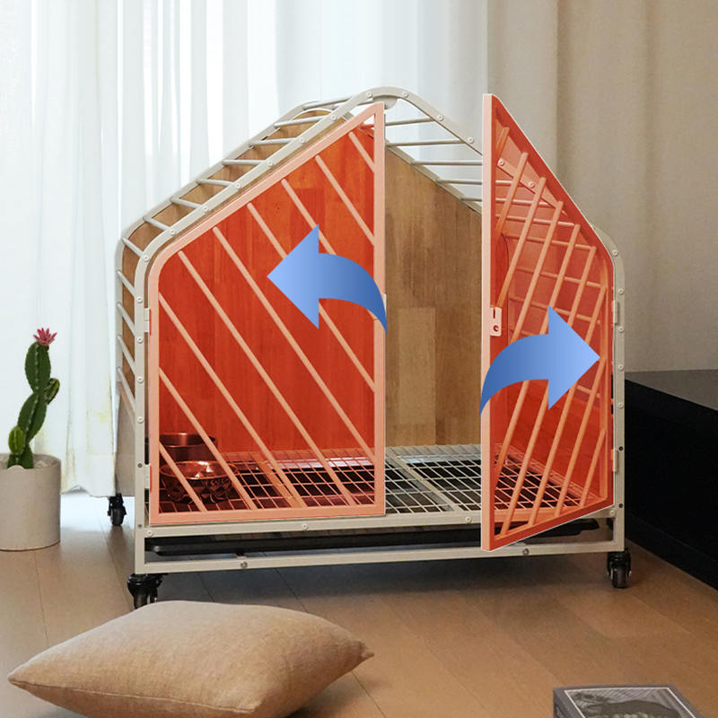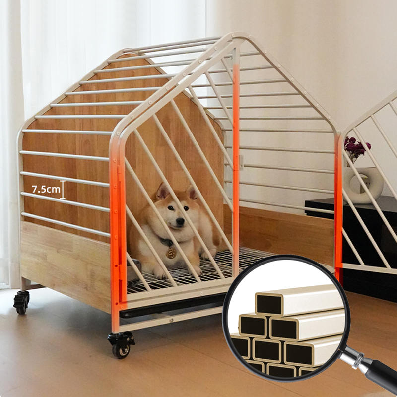 1. Stærk konstruktion: Møbelstil hundebur fortykket og grovede kulstofstålrør er robust og holdbar uden rustning, og det tygrosa-design står op til langvarig brug af aktive kæledyr.